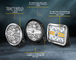 I nuovi proiettori ausiliari sono disponibili in 18 versioni, sia come abbaglianti con riferimento ECE 25 o 50 sia come luce di posizione. Inoltre, sono disponibili nelle misure 7” e 9”, con forma rotonda o quadrata, e nelle versioni con luce di posizione bianca o ambra. Le versioni rotonde sono anche offerte con alloggiamento cromato o nero.Come accessori per le applicazioni off-road, sono disponibili calotte di copertura in plastica nera con dimensioni corrispondenti a quelle dei proiettori, attraverso le quali si rende riconoscibile il contorno della caratteristica luce di posizione.