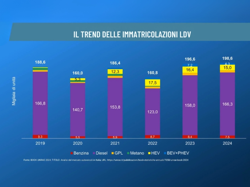 Passando alle nuove immatricolazioni, i dati degli ultimi sei anni mostrano un andamento altalenante.Per quanto riguarda i veicoli commerciali, nel 2020 e nel 2022 si è registrato un calo significativo, legato anche a fattori geopolitici come la pandemia di Covid-19 e la crisi russo-ucraina. Il 2023 ha segnato invece una ripresa, con circa 197.000 unità immatricolate (+22% rispetto al 2022). La crescita è proseguita anche nel 2024, seppur più contenuta, sfiorando le 199.000 immatricolazioni.