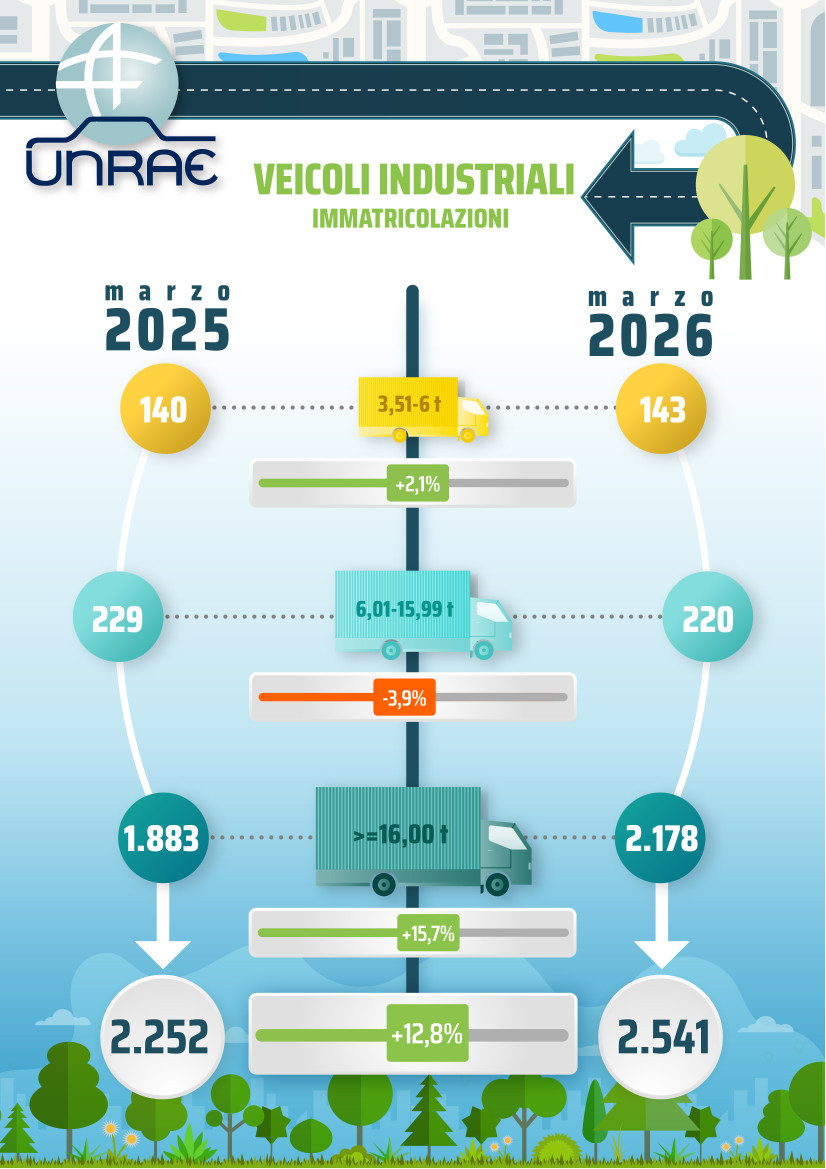 In particolare, i dati diffusi dal Centro Studi e Statistiche Unrae relativi al mese di marzo 2026 (elaborati sulla base dei dati di immatricolazione forniti dal Ministero delle Infrastrutture e dei Trasporti) mostrano un incremento del mercato del 12,8%, sostenuto da 2.541 immatricolazioni rispetto alle 2.252 dello stesso mese del 2025.